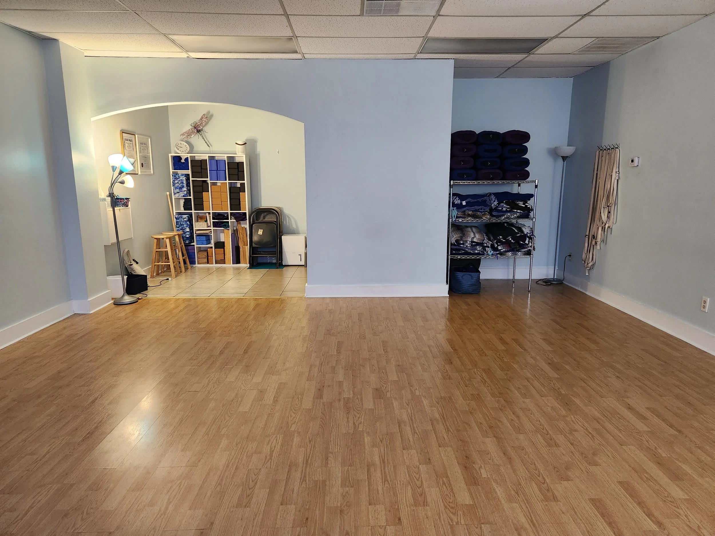 The studio is available to rent for yoga classes, meditation groups, similar activities, and small group meetings.